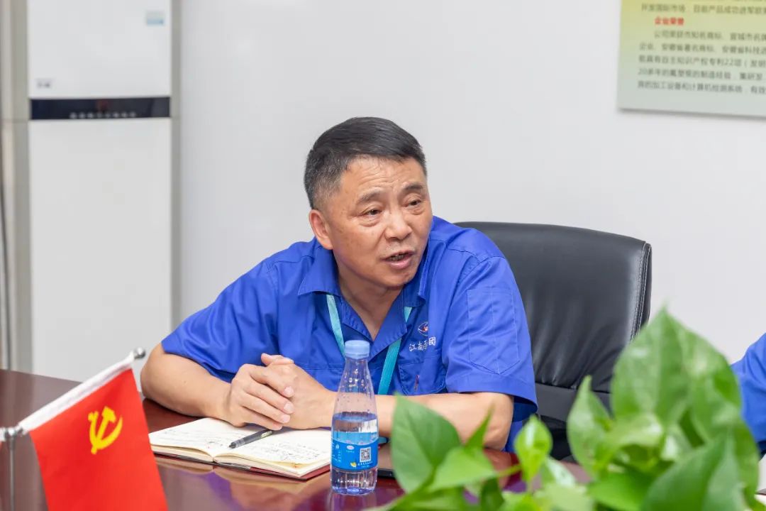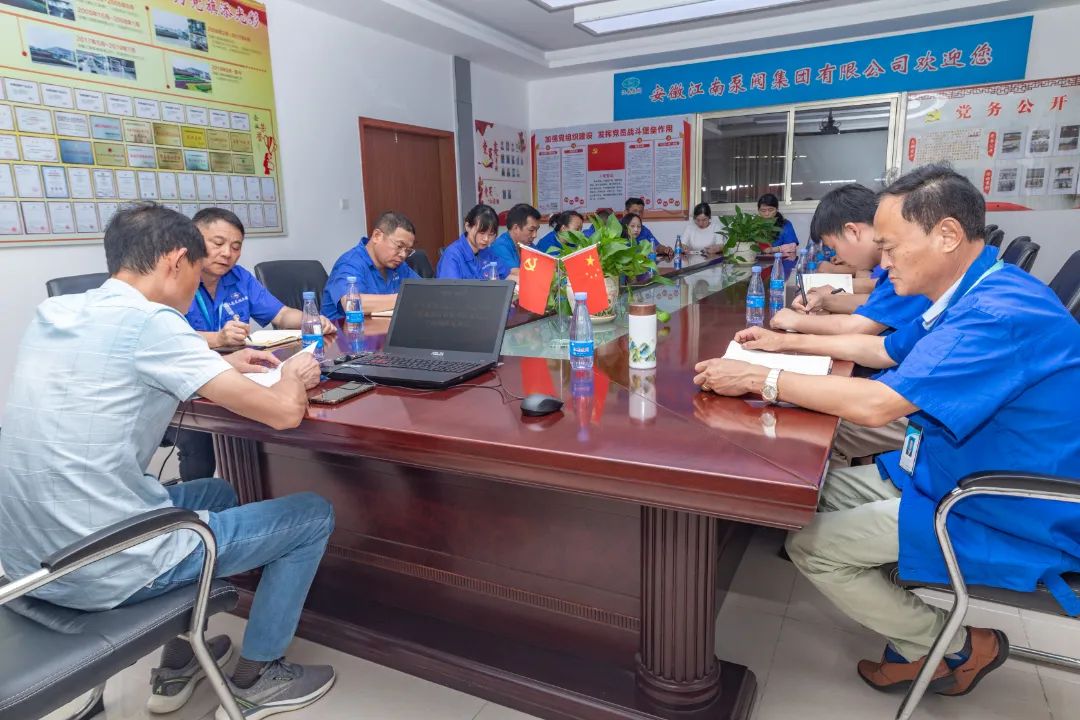 安徽江南泵閥集團有限公司董事長吳同茂、黨支部書記戴高巖、全體黨員、入黨積極分子及職工代表聆聽宣講。