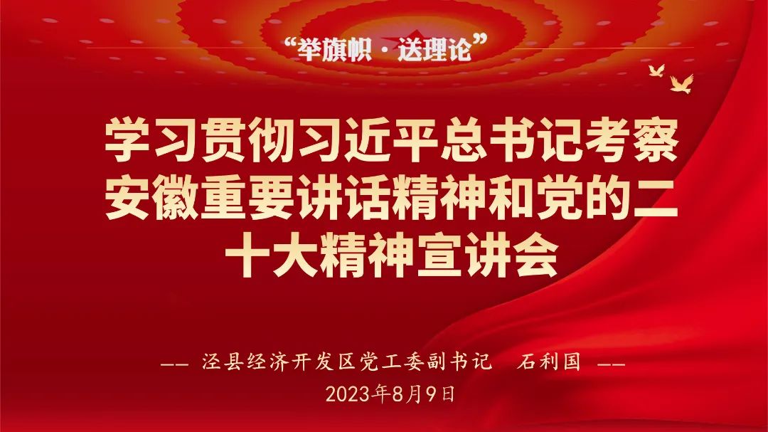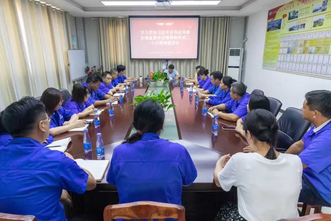 8月9日,涇縣經濟開發區黨工委副書記石利國走進安徽江南泵閥集團有限公司,開展“舉旗幟 送理論”學習貫徹習近平總書記考察安徽重要講話精神和黨的二十大精神宣講會